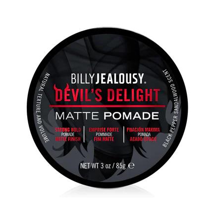 Let your hair take part in all the diabolic fun with Billy Jealousy’s Devil’s Delight Matte Pomade. Easy to distribute, the silky paste formula leaves a strong hold with a matte finish. Creates a textured look with added volume and definition. The water-based formula smoothly rinses out. Strong Hold / Matte Finish / Water Based Scent: Warm Vanilla, Sweet Black Pepper and Sandalwood Available in 3 oz pucks.