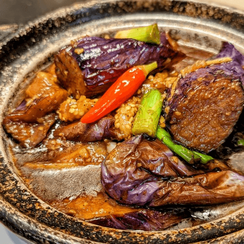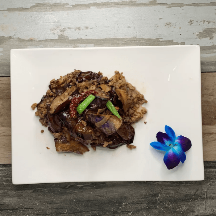Eggplant, reddish, scallions ginger sauce