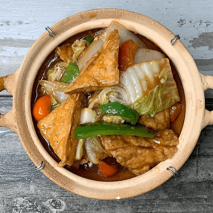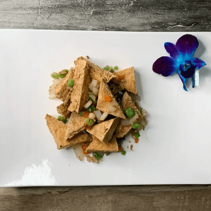 Deep fried tofu coated with chef's house sauce