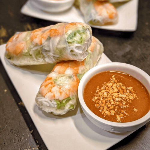 Clear rice paper filled with your choice of protein, lettuce, and vermicelli. Served with peanut sauce