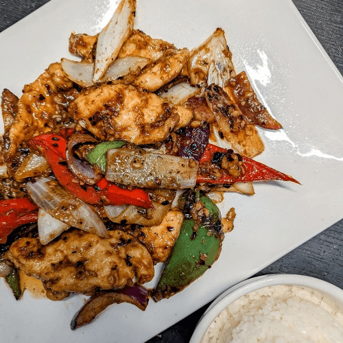 Your choice of protein wok-fry with mixture of delicious vegetables includes Chinese cabbage, bok choy, broccoli, carrot, mushroom and cabbage, in garlic sauce