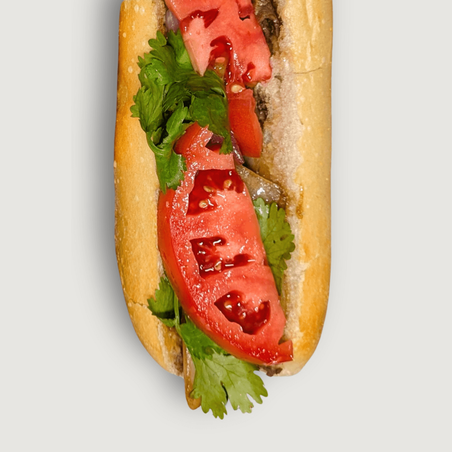 Tender braised brisket, fresh tomatoes, onions, crisp lettuce, house-made mayo, and rich house pâté, all on a traditional roll. A hearty twist on the classic!