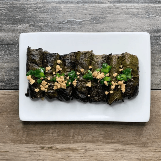 Seasoned ground beef wrapped and grilled in grape leaves