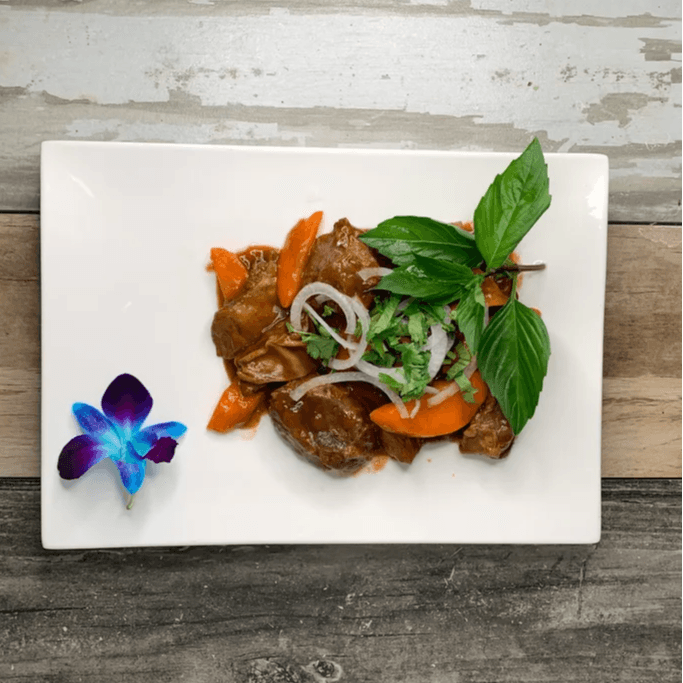 Stir-fry beef with lemongrass over vermicelli or rice