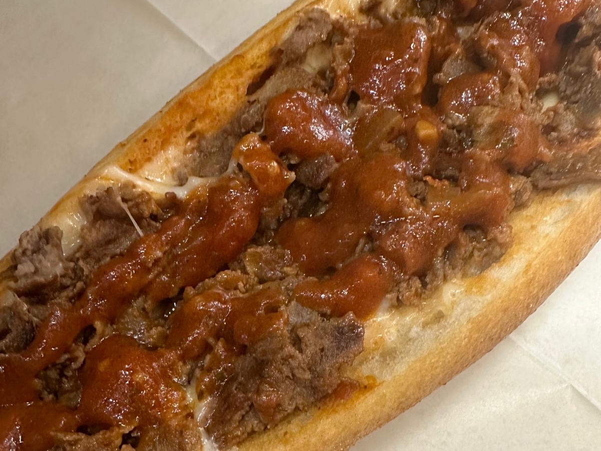 Steak, mushroom, green pepper, onion, mozzarella, & chipotle mayo