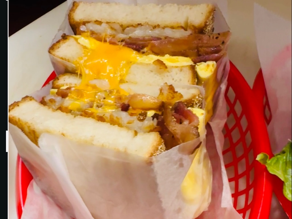 Choice of meat: pork roll, sausage, Turkey sausage, scrapple, beef sausage, bacon, Turkey bacon, ham