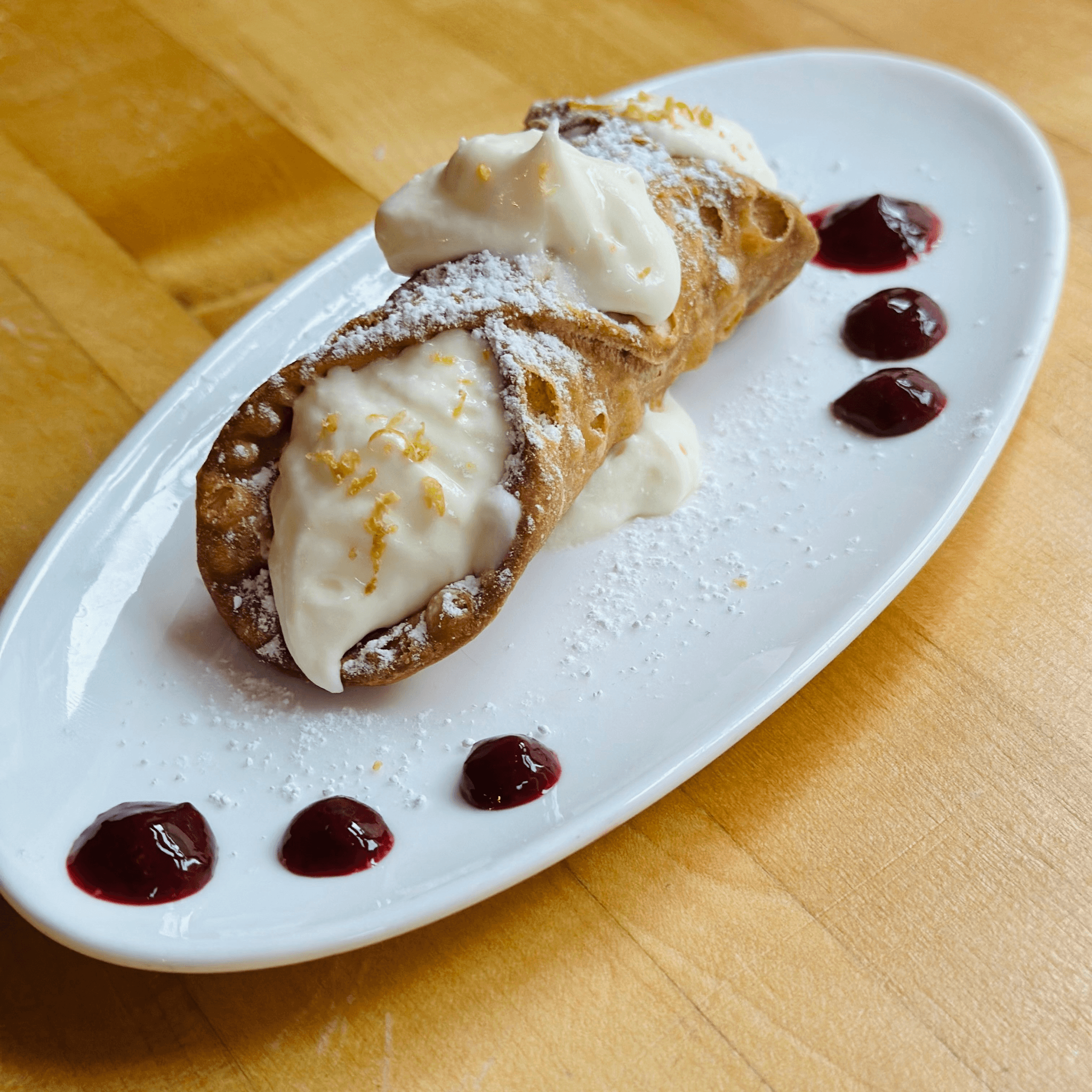 lemon cream, blackberry coulis