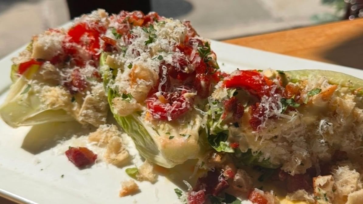 Roasted red peppers, house caesar dressing, crispy pancetta, torn baguette croutons